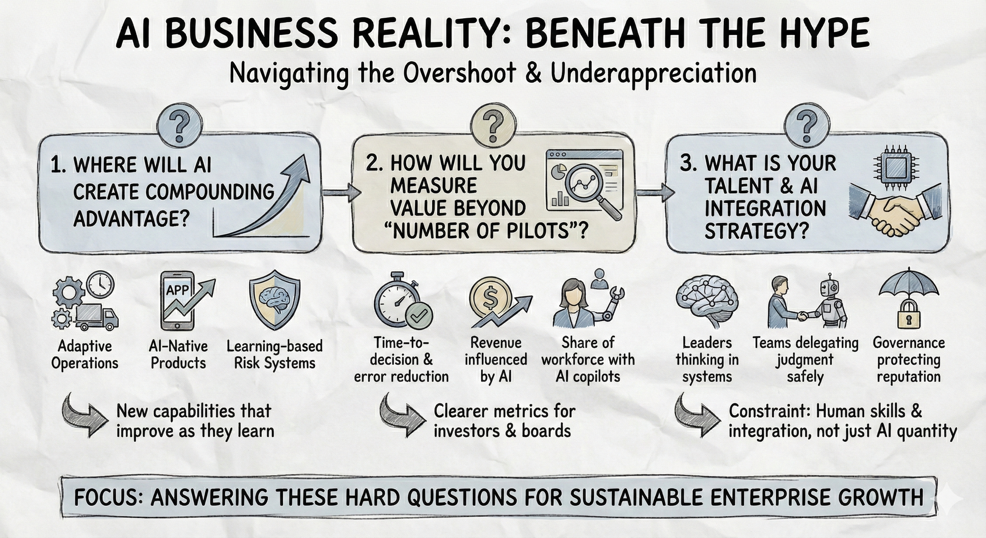 The AI business reality for enterprise leaders over the next few years won’t be about who used the most models. It will be about who answered three hard questions: