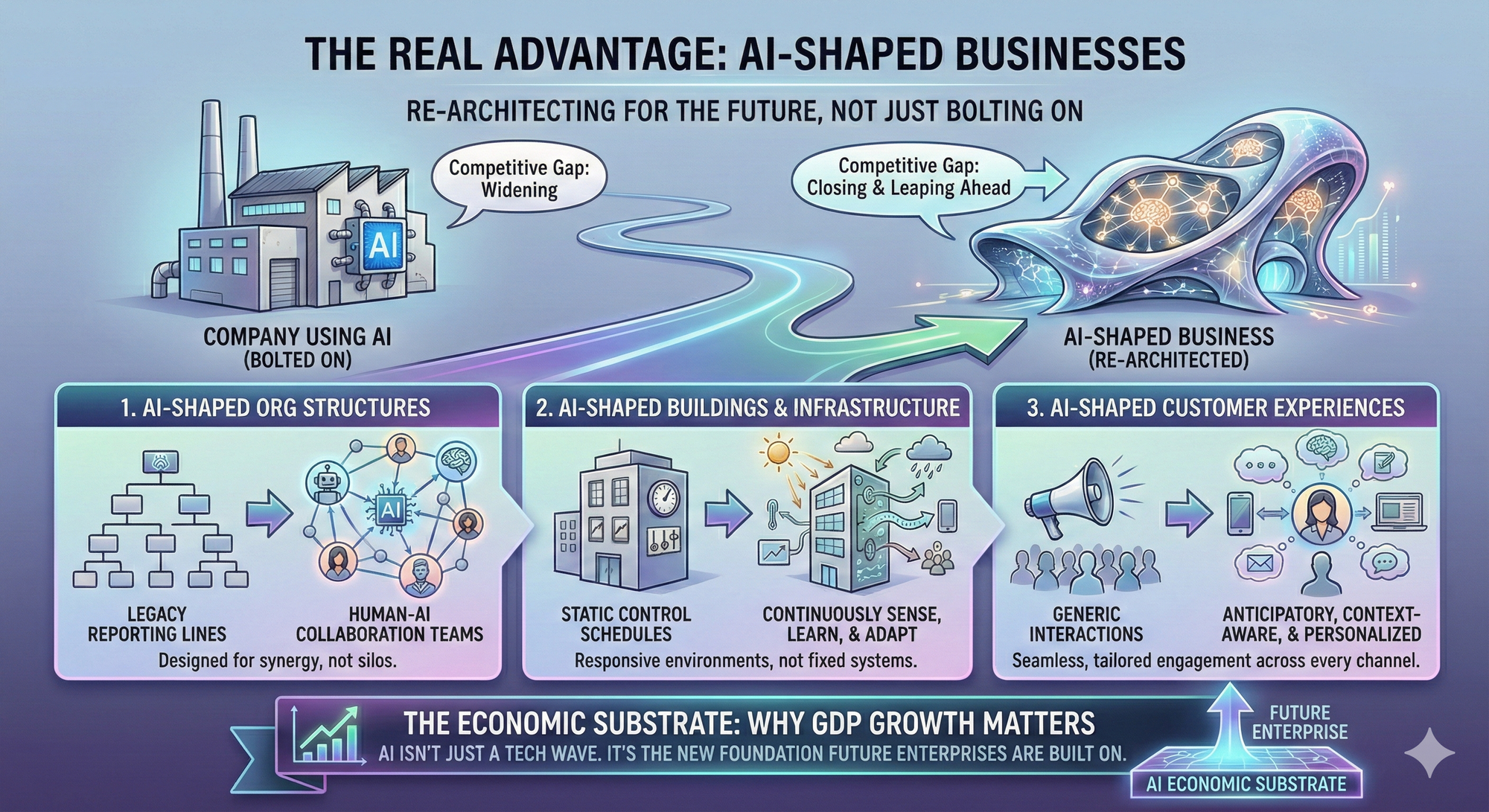 My take: The real advantage will come from “AI-shaped businesses”